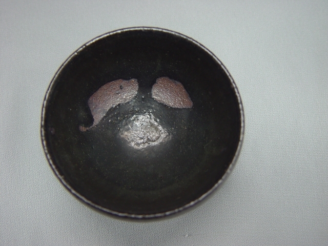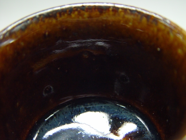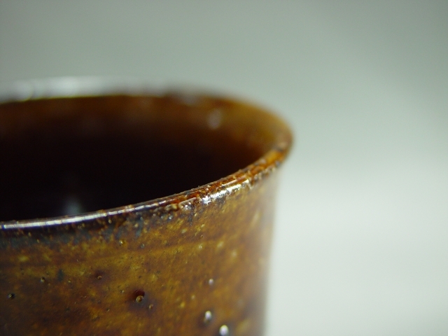 一般的には、鉄釉を下にかけ、わら灰釉を上から流し多ものが多いのですが、逆にかける場合もあります。