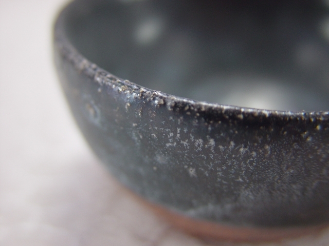 「梅花皮」とは、土と釉薬の収縮の差からうまれ、「釉薬が 粒状に縮れた状態」をいいます。