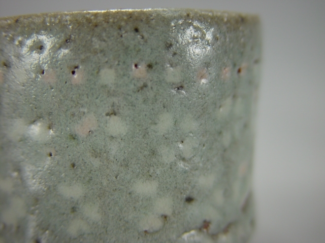 「古唐津風-青唐津」は、あくまでも私個人が作った古唐津風なぐい呑みです。土や釉薬を「当時はこのようにして作ったのではないだろうかと試行錯誤して作ったぐい呑み作品です。主に青唐津を作っています。