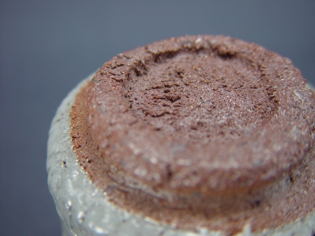 一般的には、鉄釉を下にかけ、わら灰釉を上から流し多ものが多いのですが、逆にかける場合もあります。