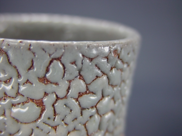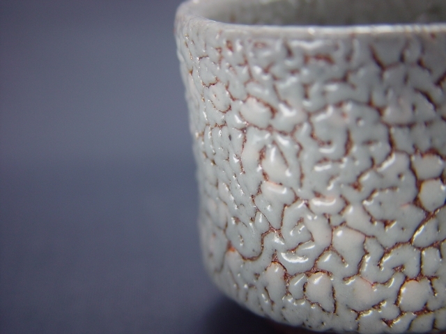 「梅花皮」とは、土と釉薬の収縮の差からうまれ、「釉薬が 粒状に縮れた状態」をいいます。