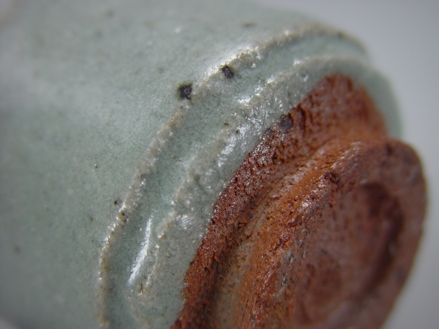 「粉青沙器」とは「粉粧灰青沙器(ふんしょうかいせいさき)」の略語で、李朝時代の15~16世紀にかけて作られた、『白化粧を施した上に青磁釉を掛けた陶器』を意味します。