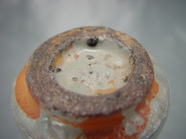 一般的には、鉄釉を下にかけ、わら灰釉を上から流し多ものが多いのですが、逆にかける場合もあります。
