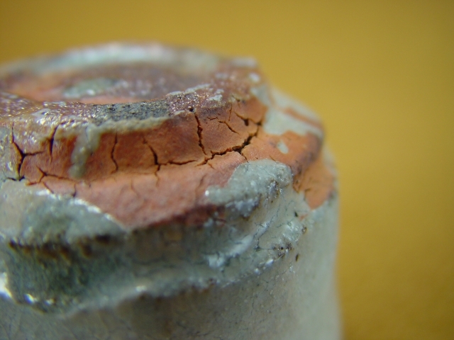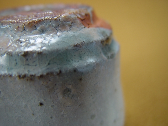 「梅花皮」とは、土と釉薬の収縮の差からうまれ、「釉薬が 粒状に縮れた状態」をいいます。