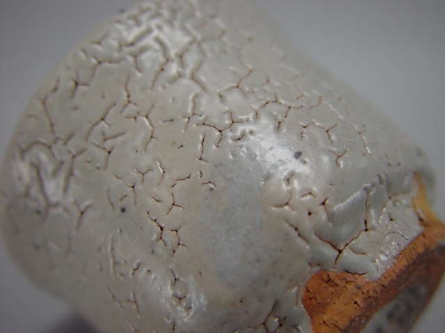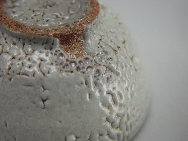 「梅花皮」とは、土と釉薬の収縮の差からうまれ、「釉薬が 粒状に縮れた状態」をいいます。