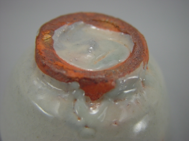 轆轤成型を終えた器はまず糸を使って土より切り離します。切り口は糸切り痕となります、唐津の山盃は雑器として作られたものなので高台は作られていないようです。