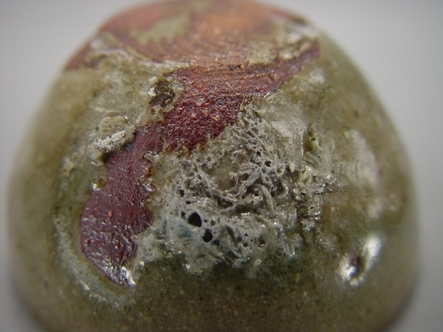 「梅花皮」とは、土と釉薬の収縮の差からうまれ、「釉薬が 粒状に縮れた状態」をいいます。