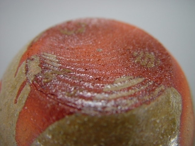 一般的には、鉄釉を下にかけ、わら灰釉を上から流し多ものが多いのですが、逆にかける場合もあります。